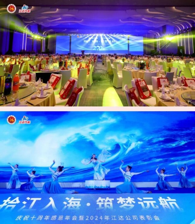 2024年1月6日上午,煙臺市級領導、煙臺臨沂商會、江達公司主要客戶、優秀供應商以及全體員工800多人齊聚煙臺開發區八角灣威斯汀酒店,共同舉行十周年盛大慶典儀式。 上午9:08,隨著倒計時開始,煙臺市級老領導、入會重要嘉賓與江達公司主要領導一起走上臺共同開啟煙臺臨沂商會、龍口江達汽配十周年感恩年會盛典序幕。