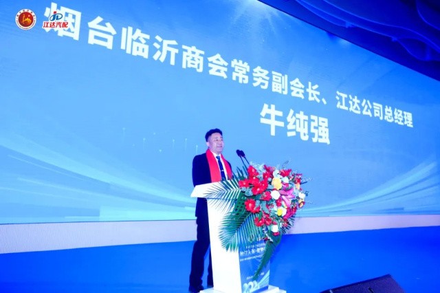 大會在滿懷激昂的氛圍中,煙臺臨沂商會 龍口江達汽配主要領導紛紛上臺共同開啟新十年?新征程的偉大航程。