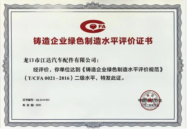 08? 江達公司被中國鑄造協會評定為“中國綠色鑄造企業” ?