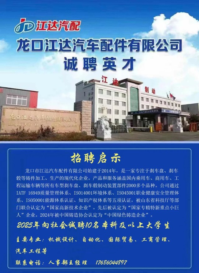2024年9月,根據山東省大中小企業融通創新聯合會評審結果,龍口市江達汽車配件有限公司被認定為“山東制造”品牌。