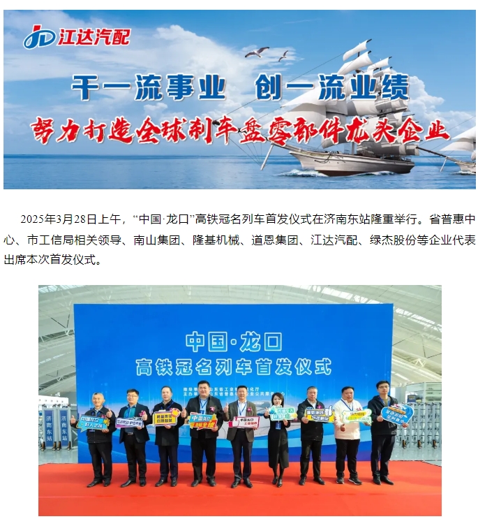 “江達制動護您平安”中國·龍口高鐵冠名列車首發儀式在濟南舉行
