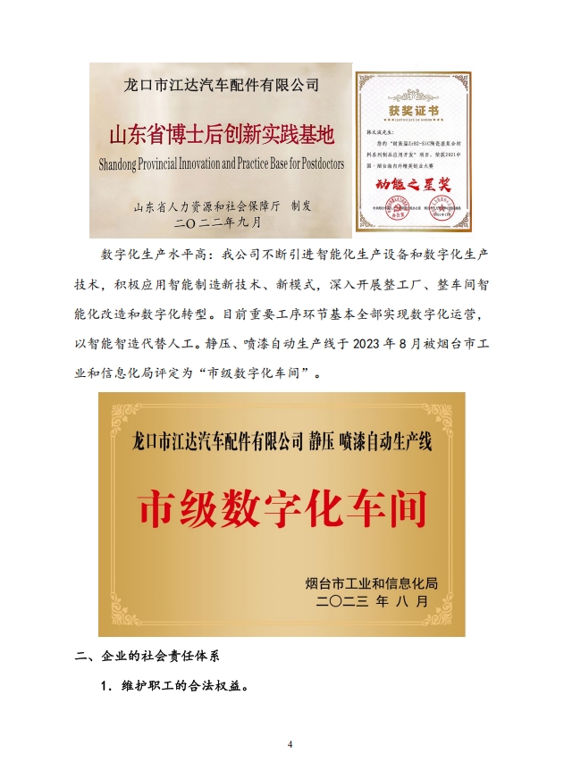 龍口市江達汽車配件有限公司2024年度履行社會責任的報告